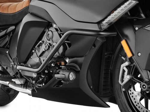 Защитные дуги двигателя были специально разработаны для кузова Bagger. Сведенный к минимуму, кронштейн надежно защищает двигатель и обтекатель.